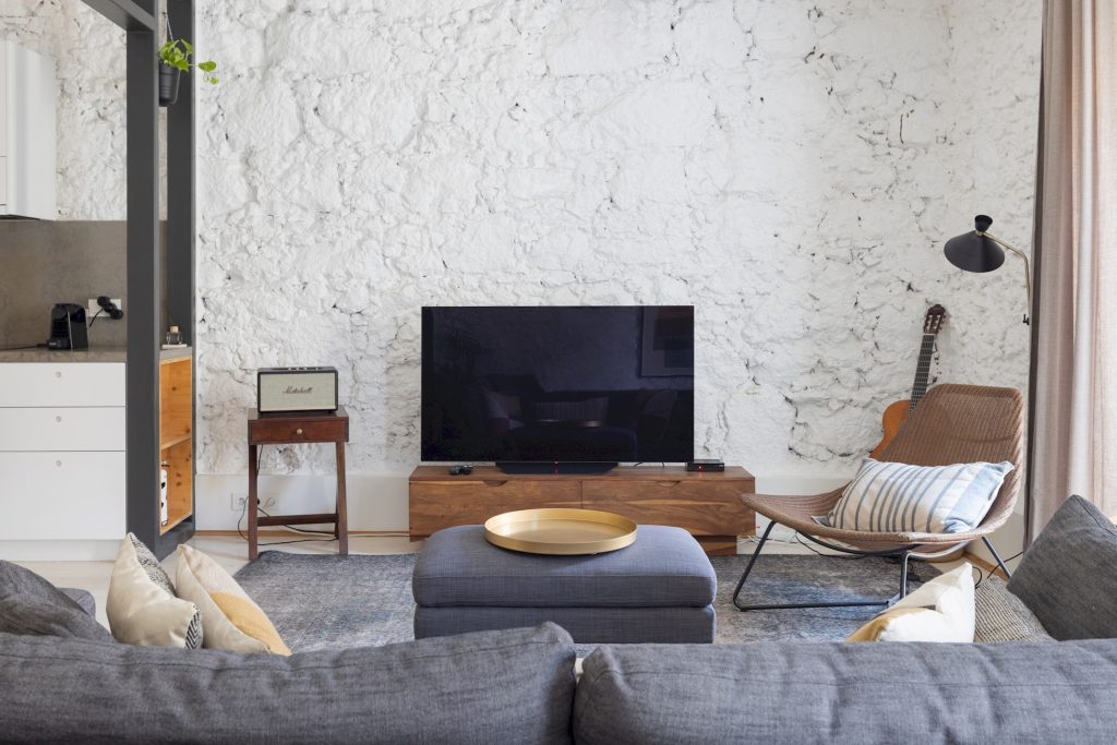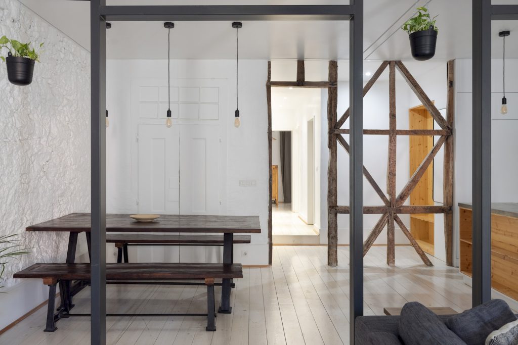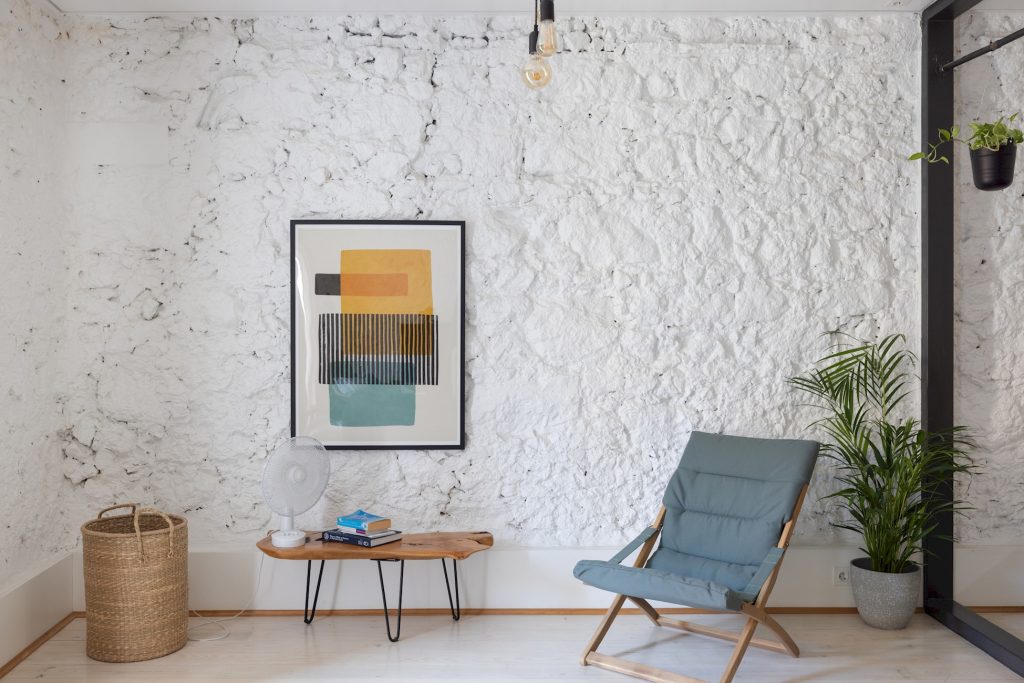 Welcome to this boutique apartment in Bica Lisbon, an architectural gem combining historical charm with contemporary designBeautifully renovated apartment where raw textures meet modern design. Accommodates up to 4 guests and includes free Wi-Fi. It is located on the 3rd floor (no elevator), but our agent can assist with luggage. Exposed stone walls, industrial beams, and minimalist decor create a bright, spacious retreat – perfect for couples, solo travelers, or small families. Ideally situated just minutes from Bairro Alto, Chiado, and Cais do Sodré.